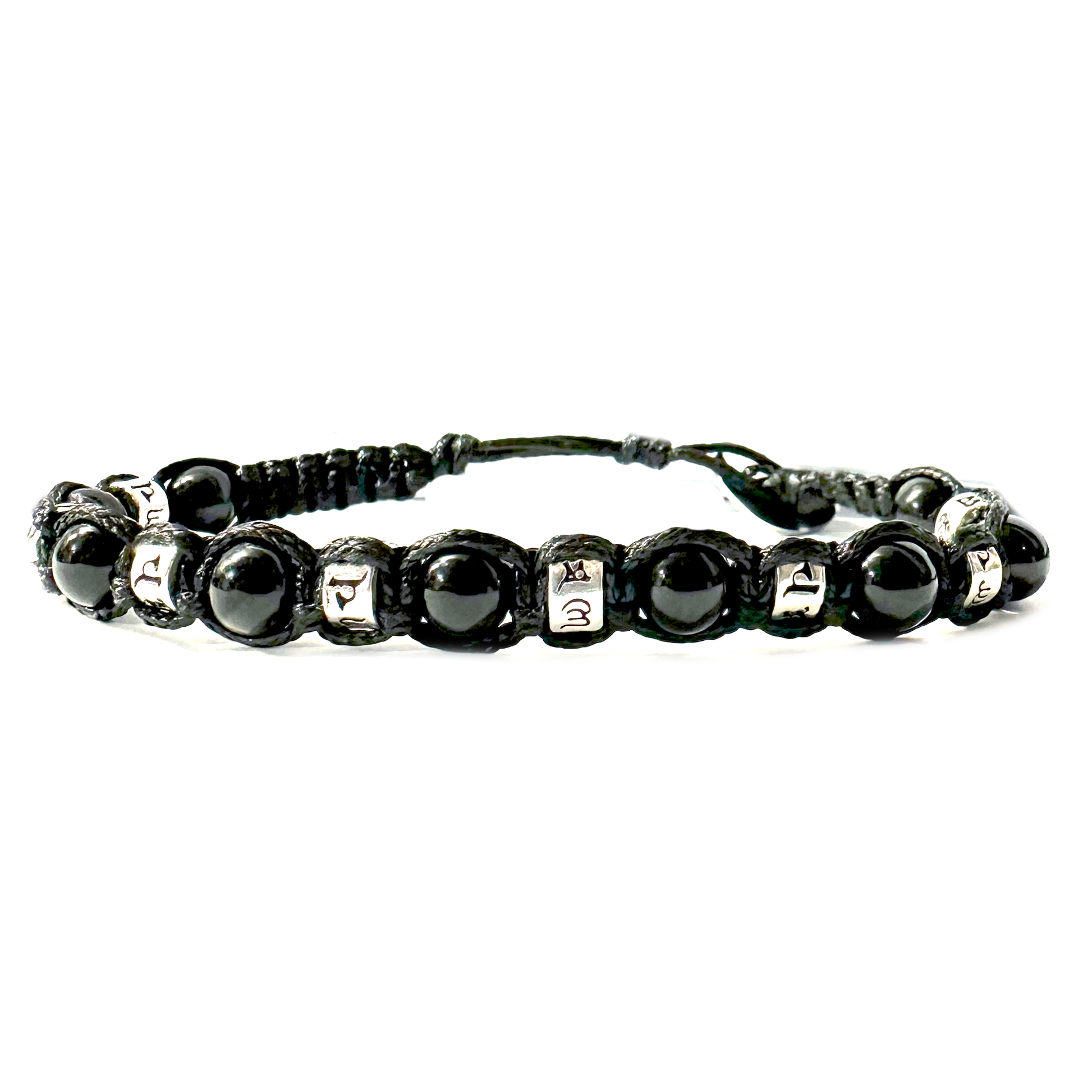 Bracciale Tibetano in Argento 925 e Tormalina Nera - Filo in cotone cerato vari colori
