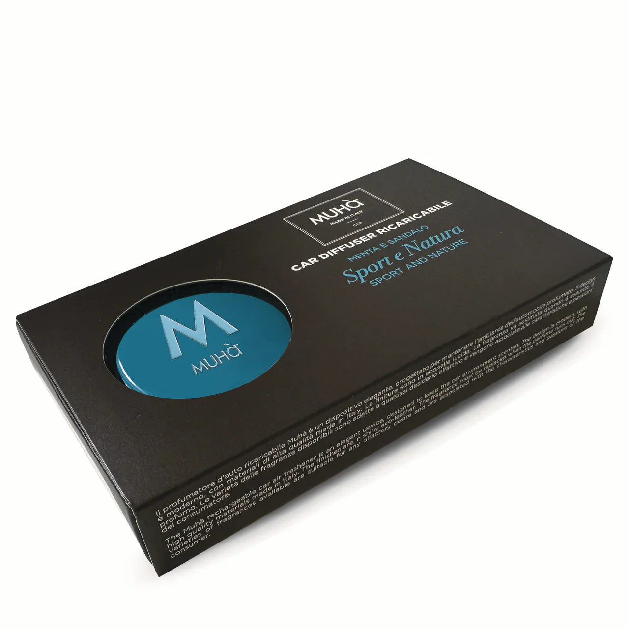 MUHÀ Car Diffuser ricaricabile Menta e Sandalo - Profumatore d'auto Sport e Natura