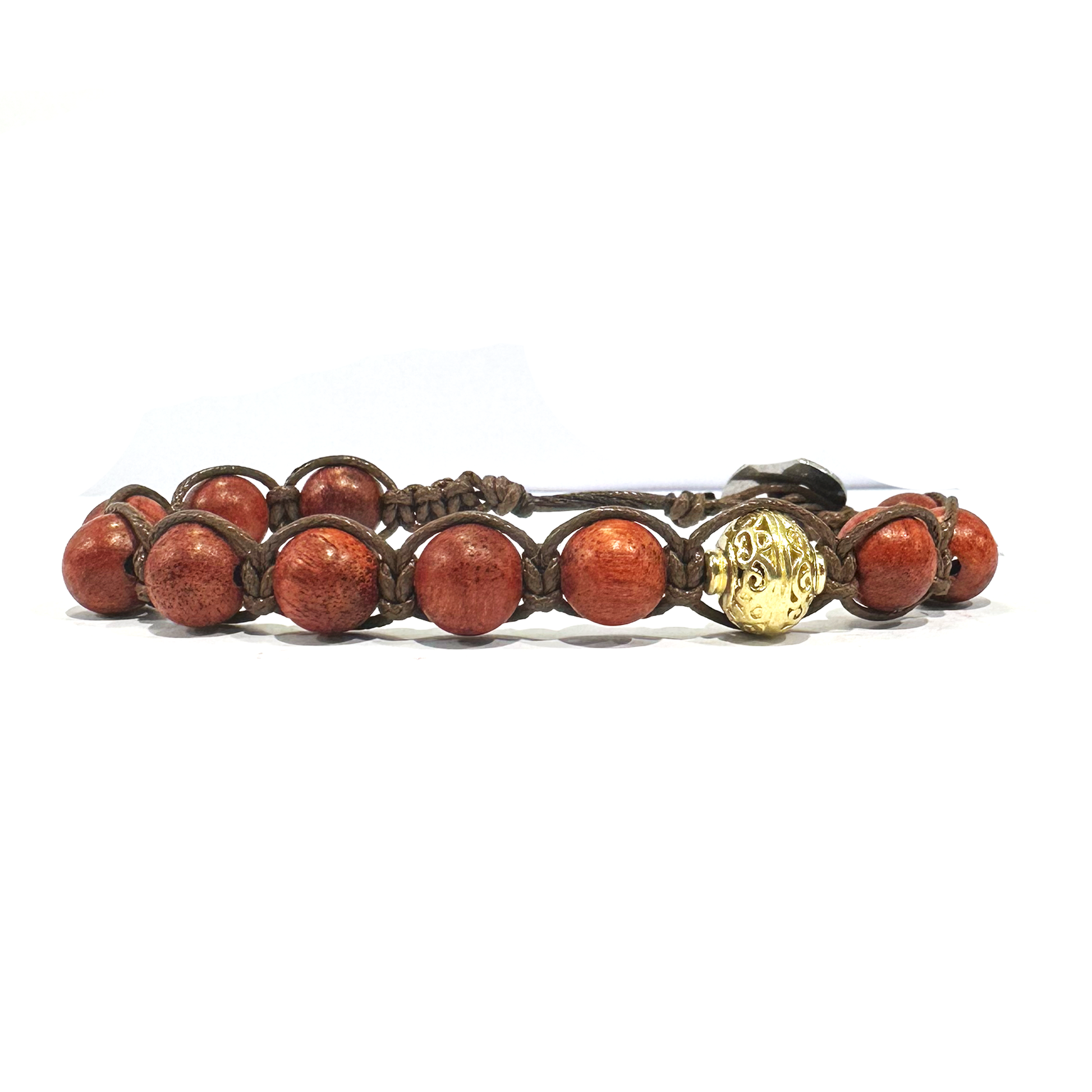 Samsara Bracciale in Legno di Dragon's Blood - Shamballa Tibetano Buddista - Filo in Cotone Cerato, Vari colori