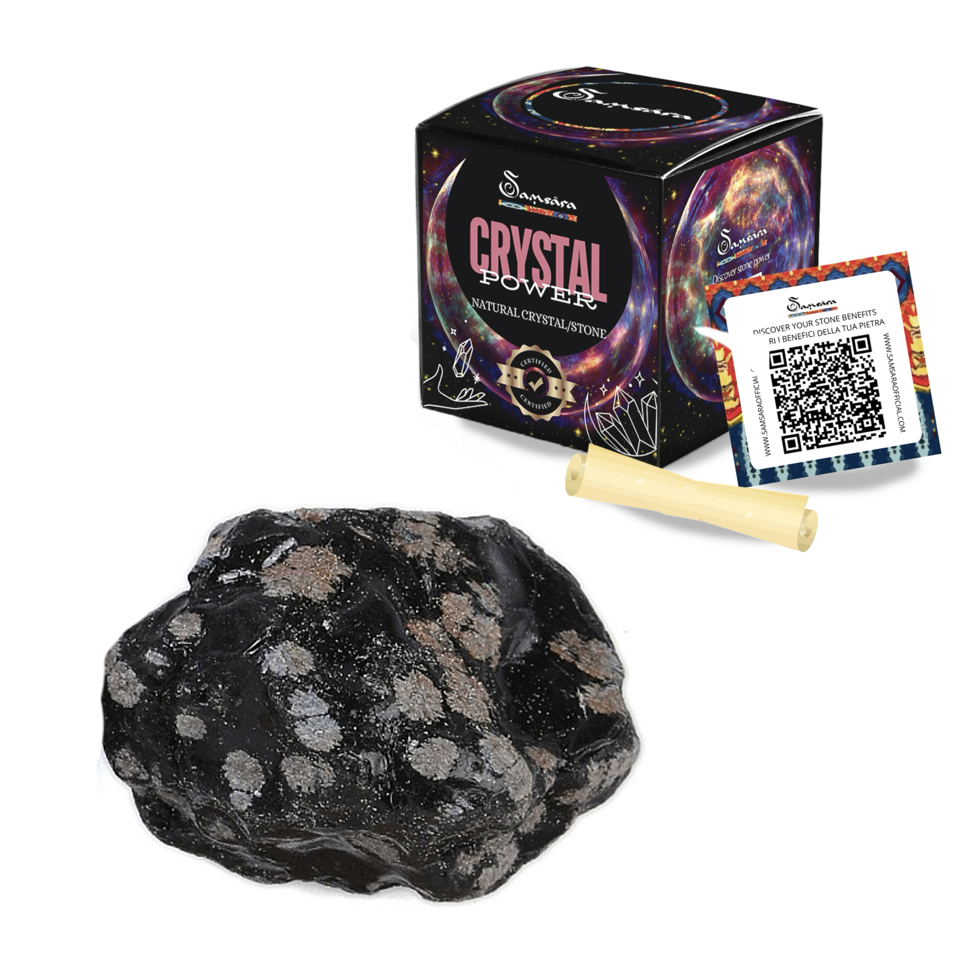 SAMSARA - OSSIDIANA FIOCCO DI NEVE Pietra Grezza Naturale con Confezione Regalo e Foglietto Informativo