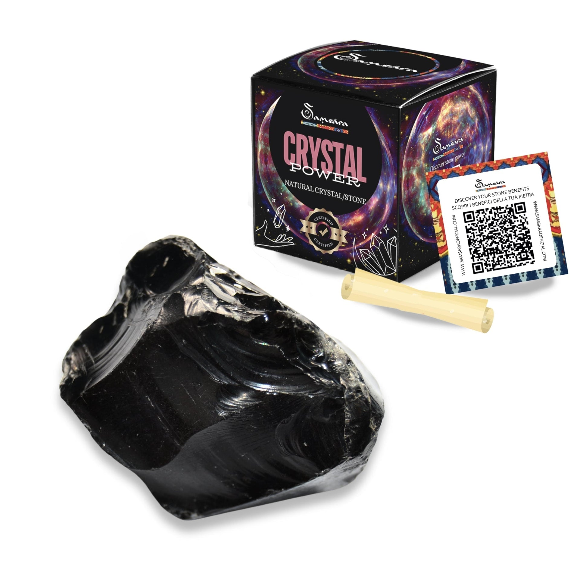 SAMSARA - OSSIDIANA NERA Pietra Grezza Naturale con Confezione Regalo e Foglietto Informativo